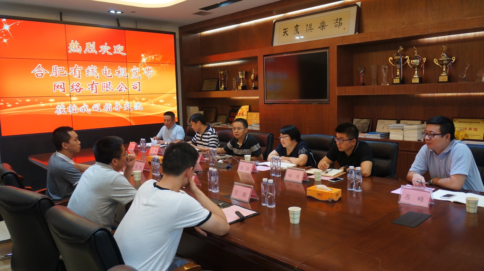 2016年8月9日,合肥有線電視寬帶網絡有限公司工程部主任楊國棟一行莅臨有微公司交流。會上(shàng),雙方就有線電視網未來(lái)發展方向、老視我舊小區網絡改造優化等多方面進行深入溝通(tōng)和交流,為雙海體方下(xià)一步深化合作奠定良好的基礎。
