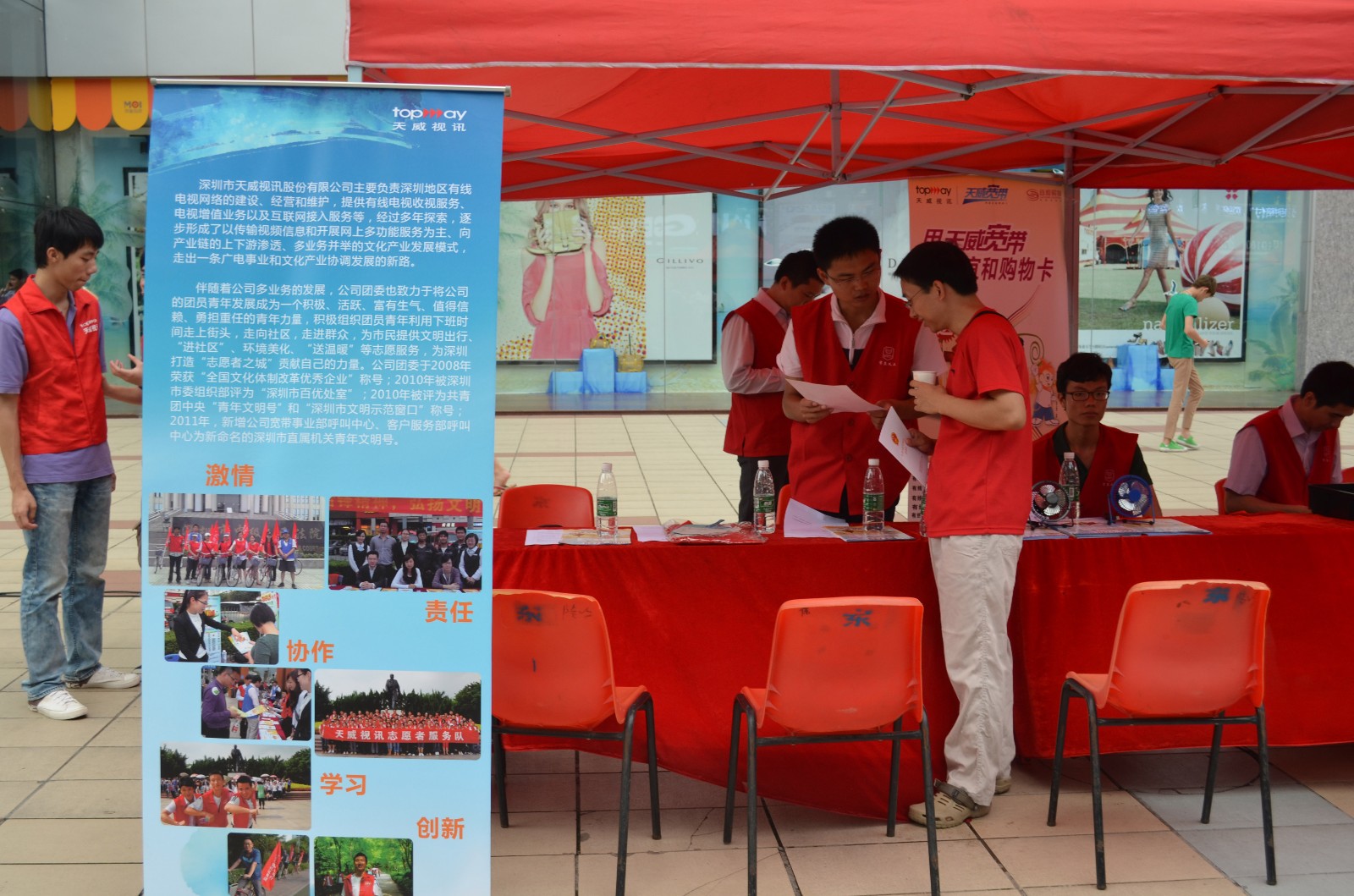 2012年5月15日,由共青團深圳市直屬機(jī)關工作委員會主辦,《站如永遠(yuǎn)跟黨走 志願齊參與》紀念建團90周年特色志願服務在華亮弟強北(běi)商業街舉行,活動倡導團結友愛、助人為樂、服務大衆的社會風氣;在月個總公司團委的組織下(xià),天威網絡工程公司響應号召、積極參與了河樹志願者活動。